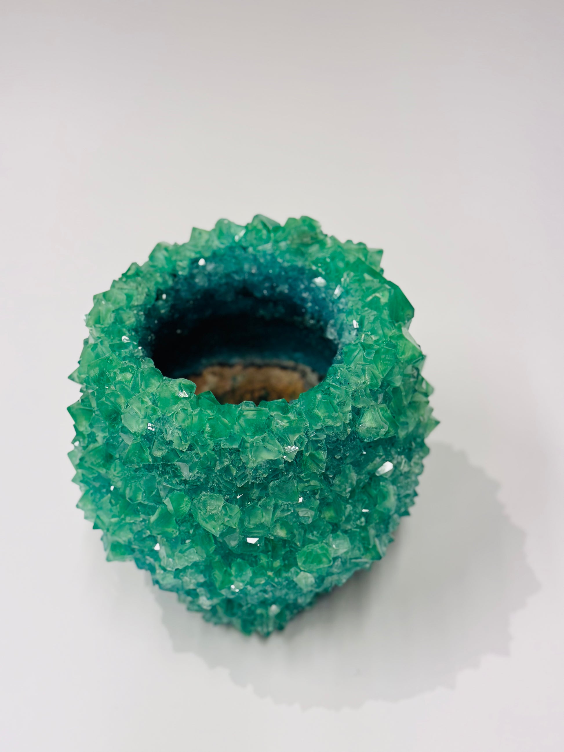 Each vase is unique in shape, color, and texture, due to the organic development of the object. This vase is the result of the natural crystallization of minerals and the influence of the designer on the formation process.