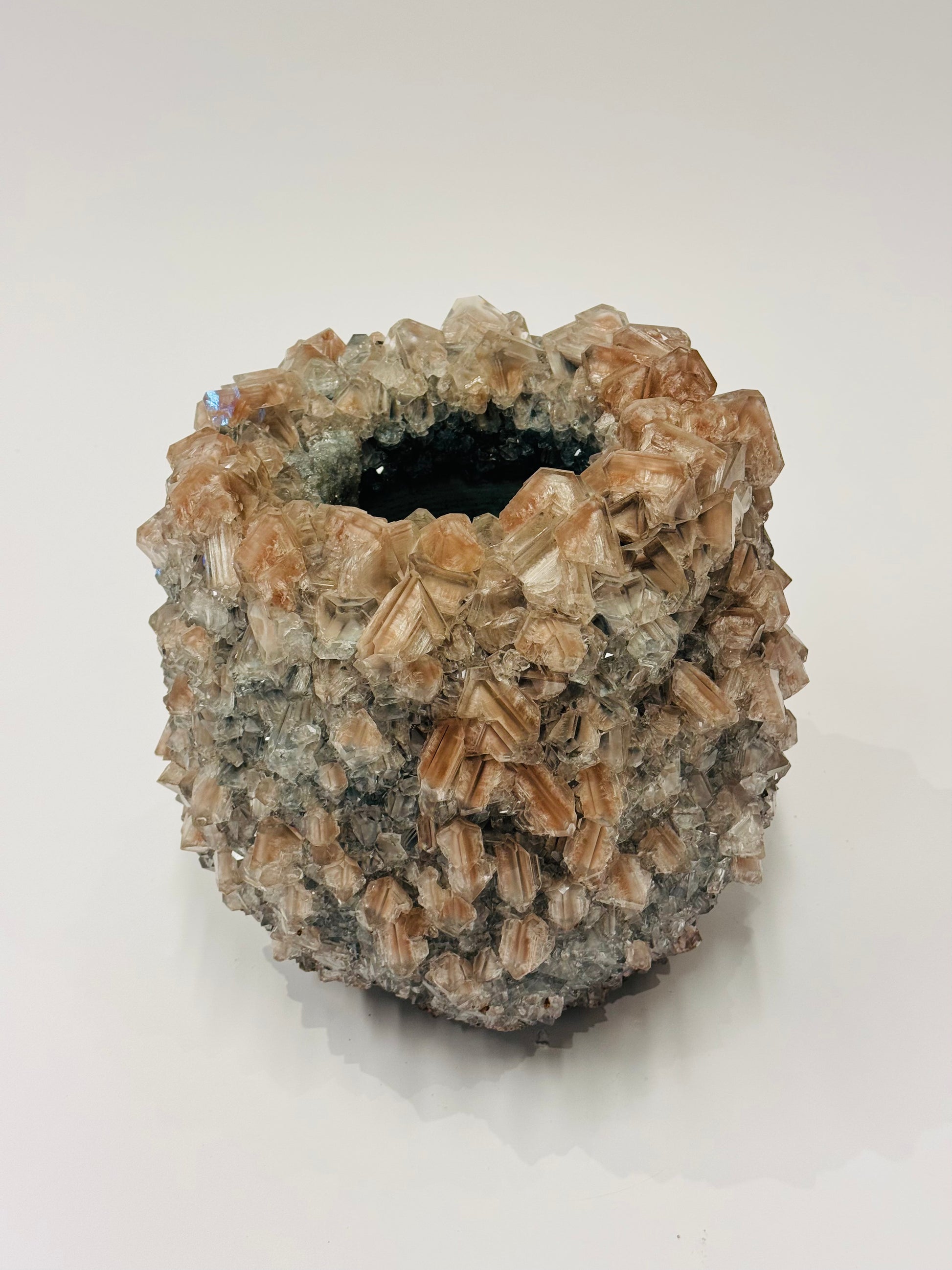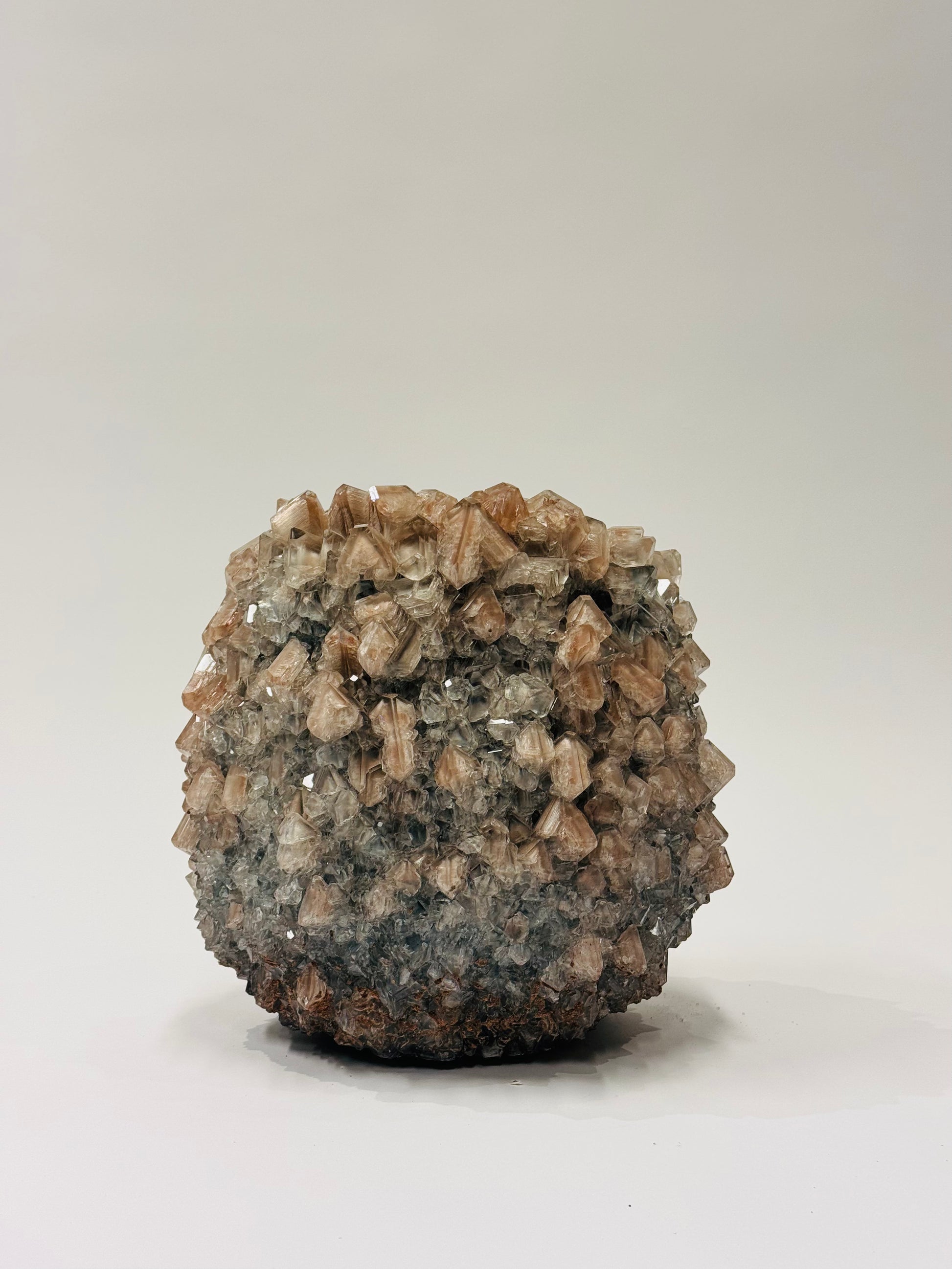 Each vase is unique in shape, color, and texture, due to the organic development of the object. This vase is the result of the natural crystallization of minerals and the influence of the designer on the formation process.