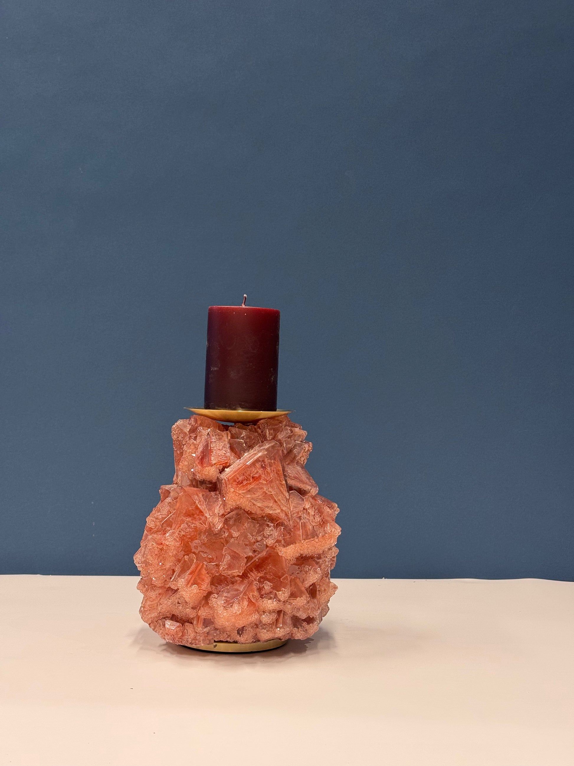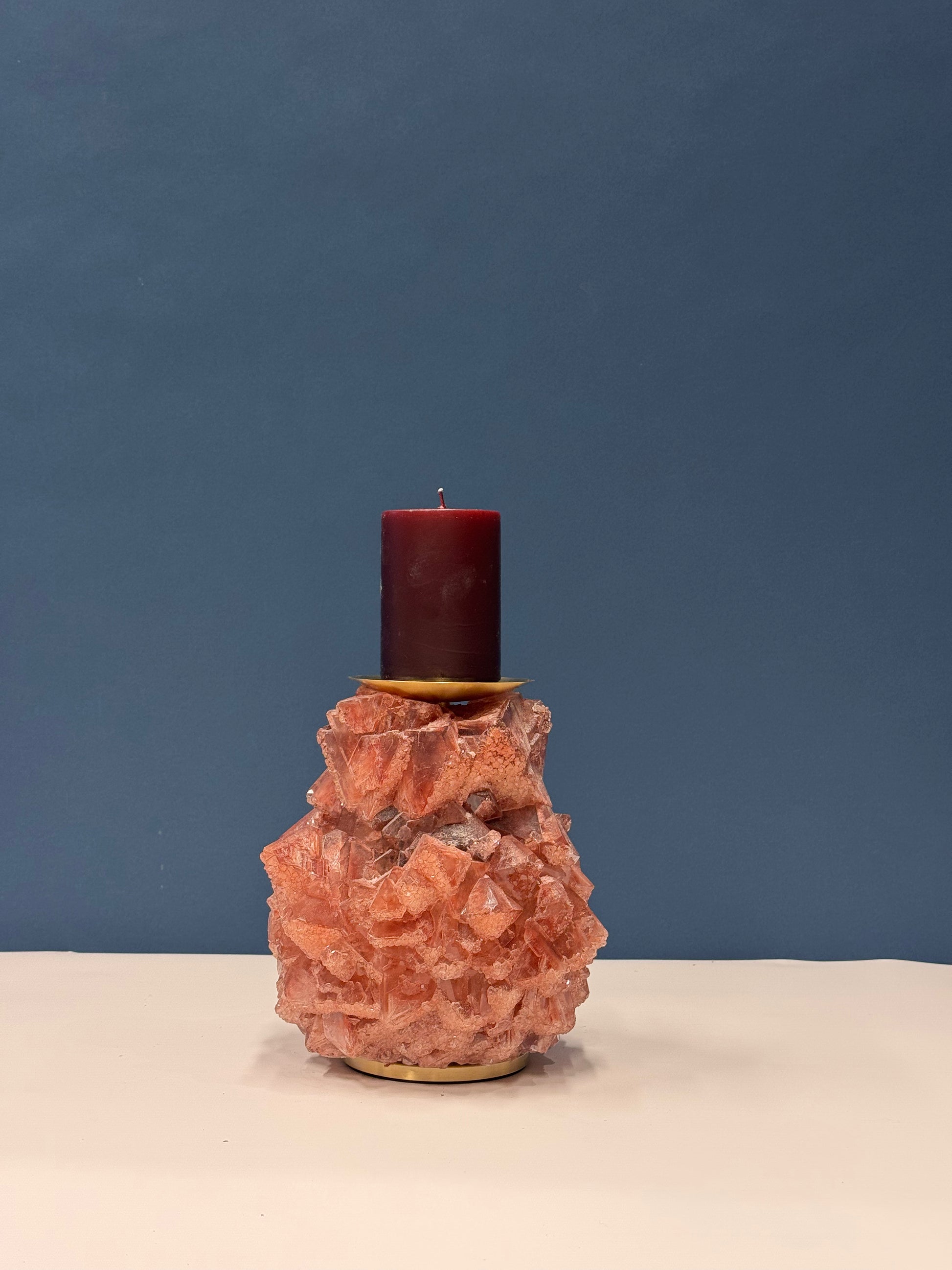 The Pillar Candle Holder is a refined and timeless piece, crafted from natural crystal to bring a warm, luminous touch to your living space. Each holder is meticulously shaped and polished to highlight the inherent beauty and texture of the crystal, grown and finished in our studio.