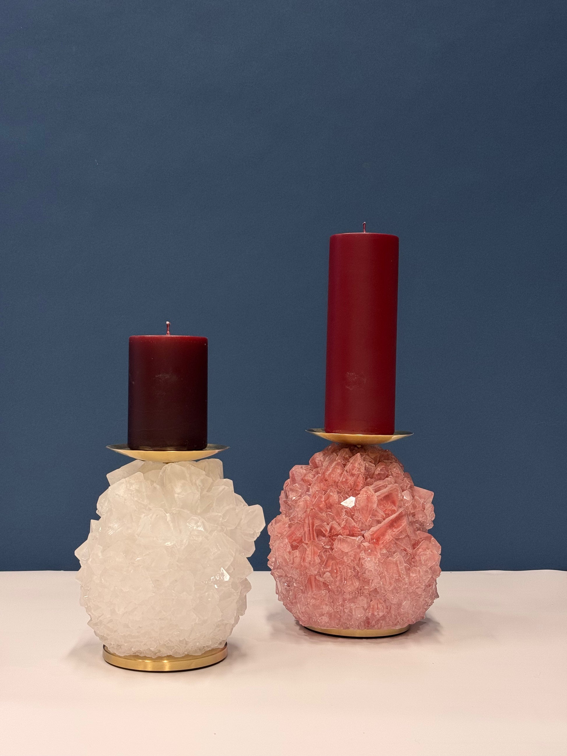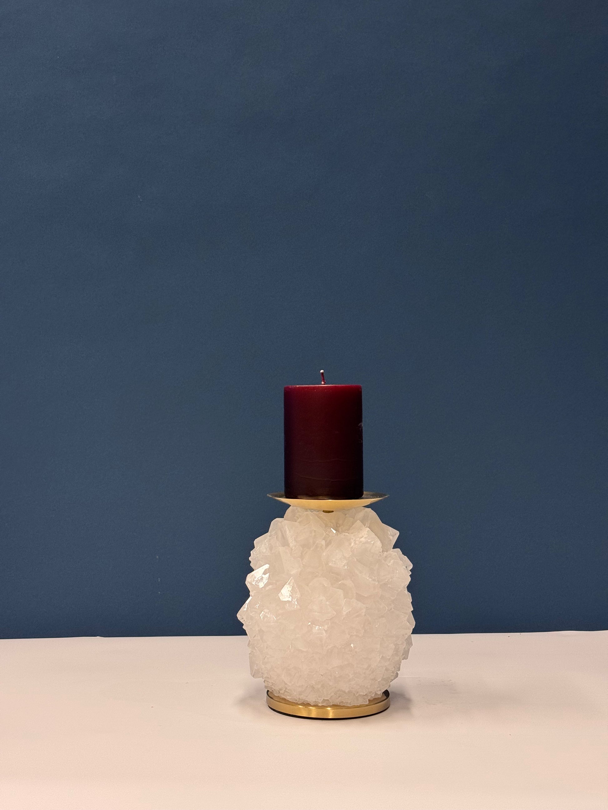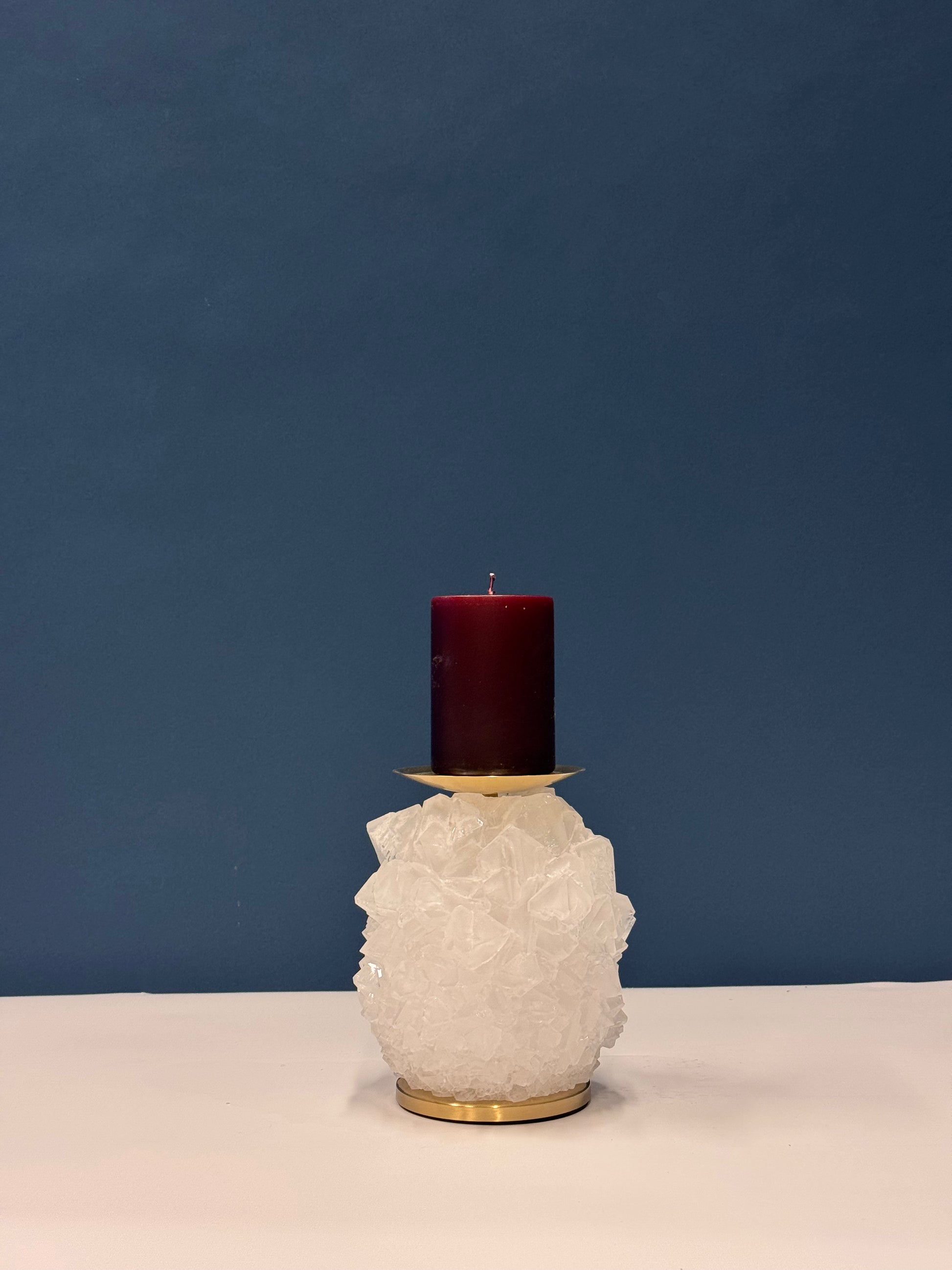 The Pillar Candle Holder is a refined and timeless piece, crafted from natural crystal to bring a warm, luminous touch to your living space. Each holder is meticulously shaped and polished to highlight the inherent beauty and texture of the crystal, grown and finished in our studio.